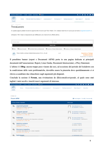 Il penultimo banner (report e Documenti AIFM) porta in una pagina dedicata ai principali documenti dell’associazione: Report, Linee Guida, Documenti Intersocietari, e Plicy Statement. L’ultimo è il Blog: ancora troppo poco vissuto dai soci, ad eccezione del periodo del lockdown con la condivisione delle varie problematiche, dovrebbe essere la piazzetta dove quotidianamente ci si ritrova a scambiare due chiacchiere sugli argomenti più disparati.