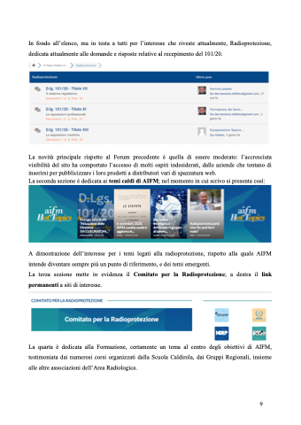 In fondo all’elenco, ma in testa a tutti per l’interesse che riveste attualmente, Radioprotezione, dedicata attualmente alle domande e risposte relative al recepimento del 101/20.