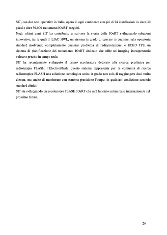 SIT ha recentemente sviluppato il primo acceleratore dedicato alla ricerca preclinica per radioterapia FLASH, l'ElectronFlash: questo sistema rappresenta per la comunità di ricerca radioterapica FLASH una soluzione tecnologica unica in grado non solo di raggiungere dosi molto elevate, ma anche di monitorare con estrema precisione l'output in qualsiasi condizione secondo standard clinici.