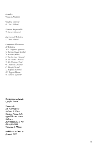 Realizzazione digitale e grafica interni. Trimestrale dell’Associazione Italiana di Fisica Medica, Piazza della Repubblica 32, 20124 Milano – Autorizzazione n. 403 del 20/12/2013 Tribunale di Milano Pubblicato nel mese di Gennaio 2021 iii