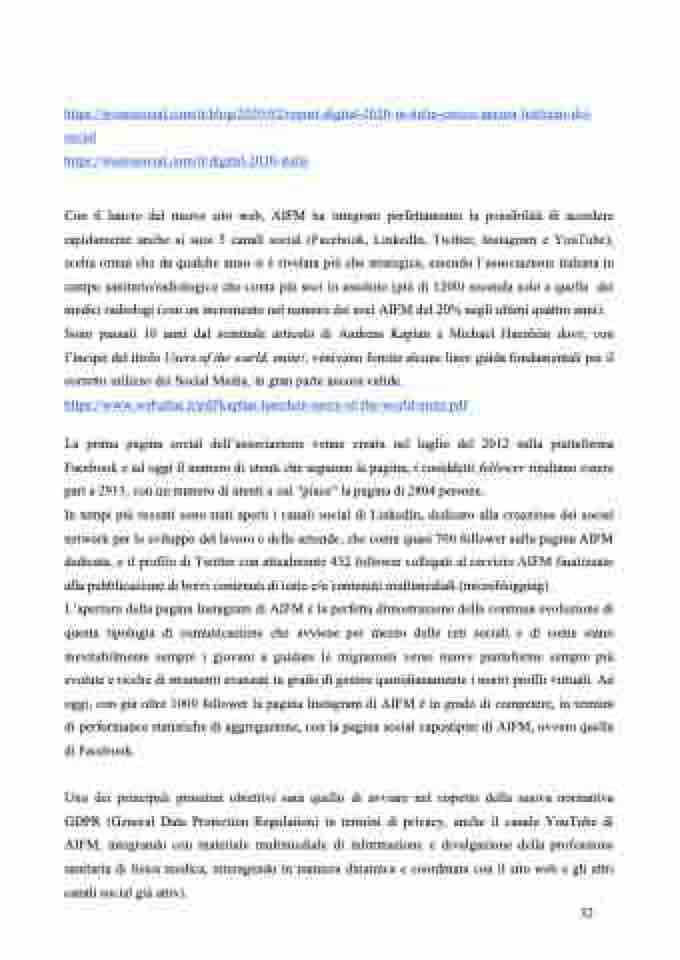 Con il lancio del nuovo sito web, AIFM ha integrato perfettamente la possibilità di accedere rapidamente anche ai suoi 5 canali social (Facebook, LinkedIn, Twitter, Instagram e YouTube), scelta ormai che da qualche anno si è rivelata più che strategica, essendo l’associazione italiana in campo sanitario/radiologico che conta più soci in assoluto (più di 1200) seconda solo a quella dei medici radiologi (con un incremento nel numero dei soci AIFM del 20% negli ultimi quattro anni). Sono passati 10 anni dal seminale articolo di Andreas Kaplan e Michael Haenlein dove, con l’incipit del titolo Users of the world, unite!, venivano fornite alcune linee guida fondamentali per il corretto utilizzo dei Social Media, in gran parte ancora valide. https://www.webatlas.it/pdf/kaplan-haenlein-users-of-the-world-unite.pdf